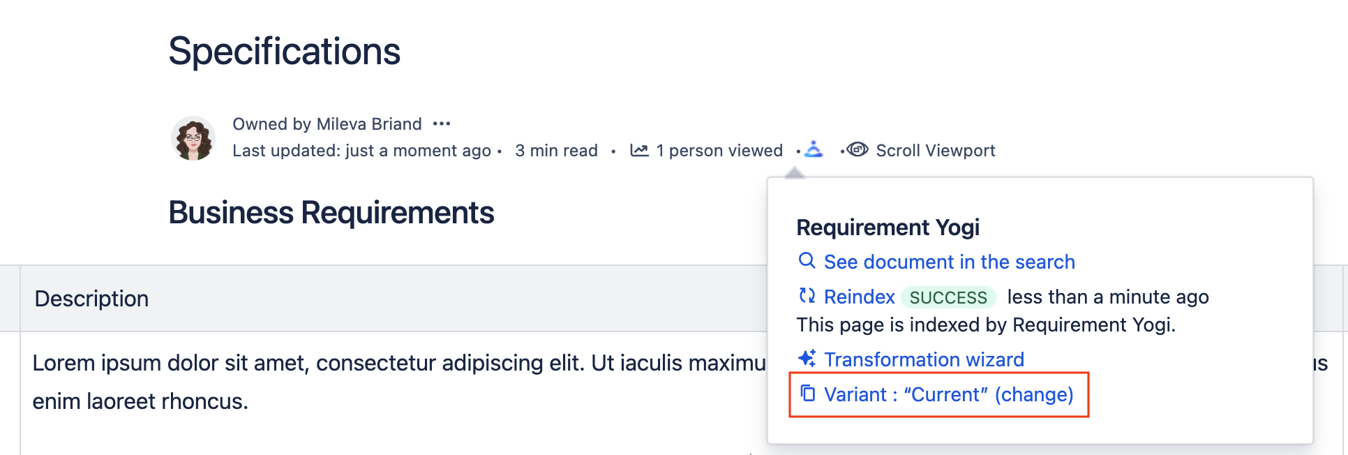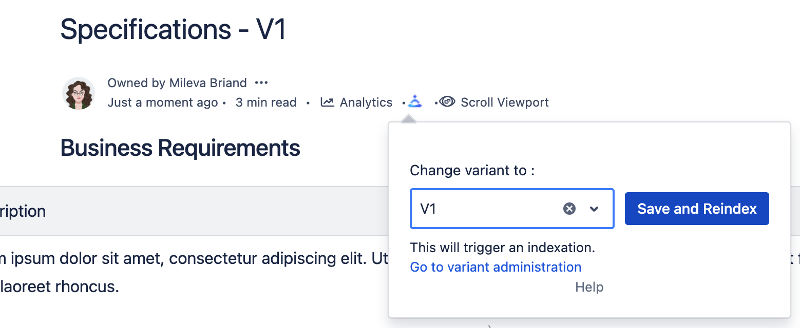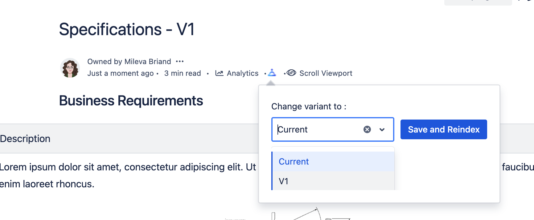 Before having any variant created, all your pages will be in ‘Current’ by default. You can see that information in the Byline. | ![]() |