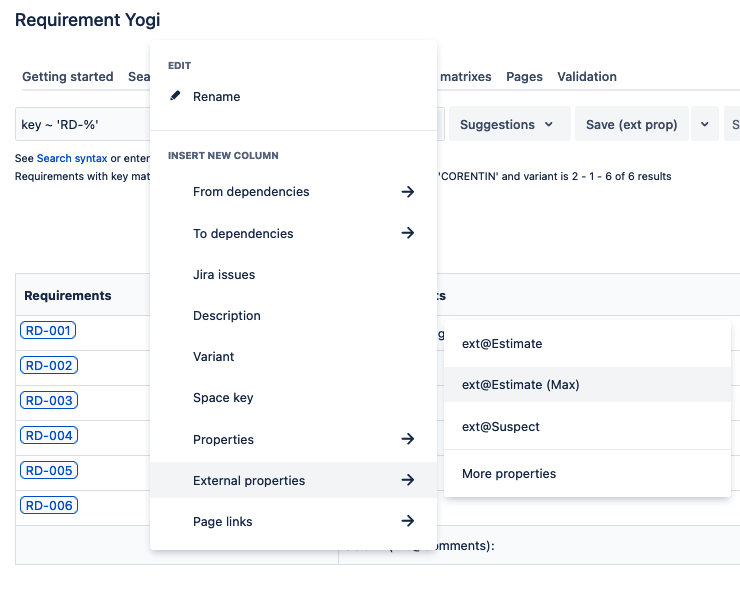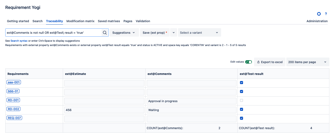 Requirement Yogi allows you to add, edit and track requirement data without disturbing the viewers or the author of the original page. External properties are not visible on the original page but you can see them in the traceability matrix or when you click on the requirement popup. External properties are also exportable to Excel with the traceability matrix.