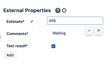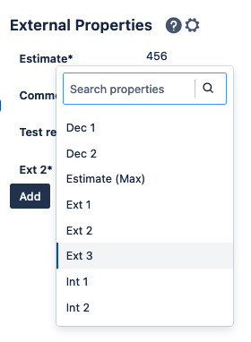 Please note that we create “Default” external properties for you (estimate, estimate (max), status and comment)