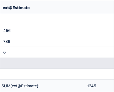 SUM(ext@Cost > 2) | Calculates the sum of Cost external properties | |