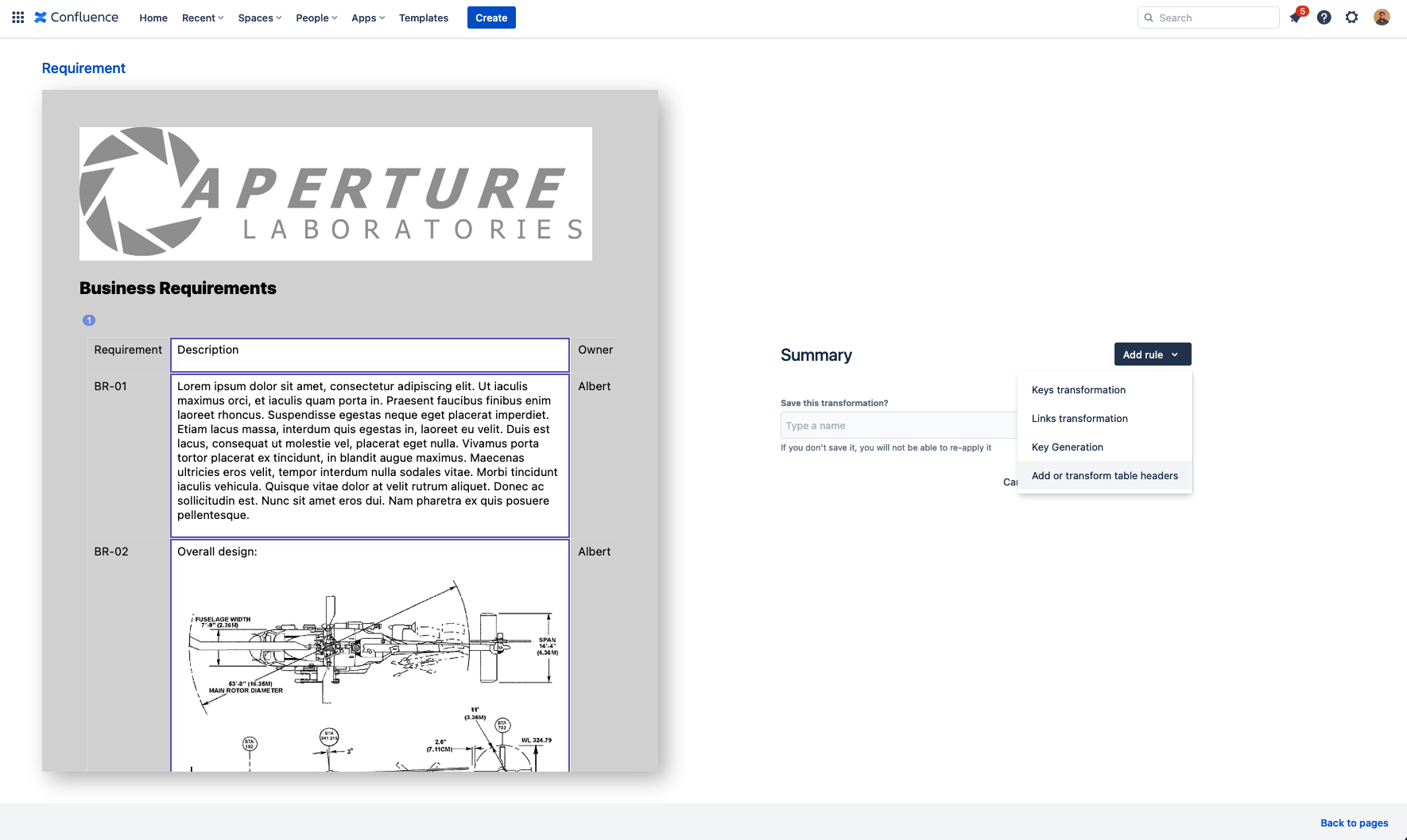 We will replace the first row of your tables. You can use this transformation to quickly rename properties for several tables of requirements at once. Tables already having headers will also have their headers replaced. We will remove the first row of tables not having headers.