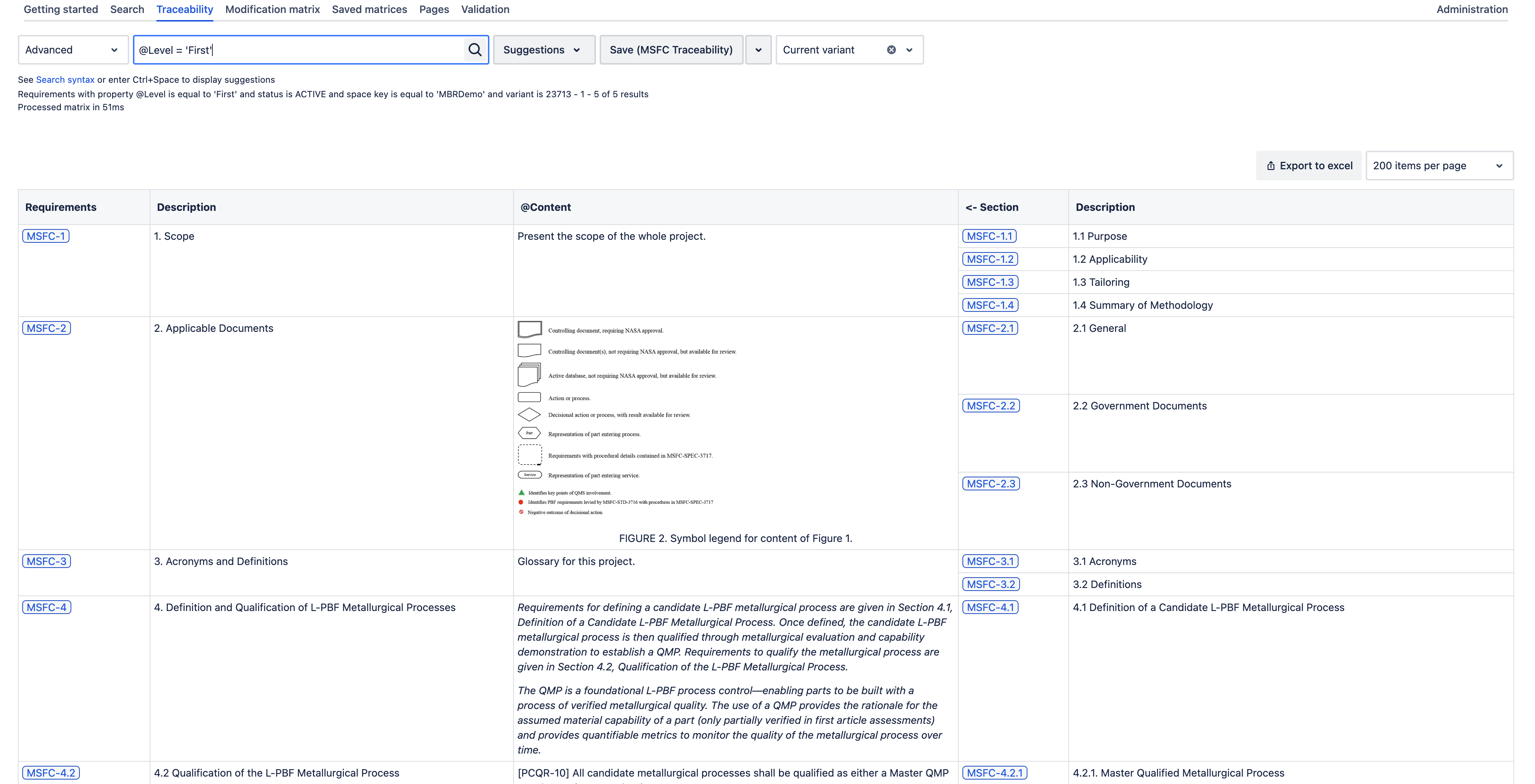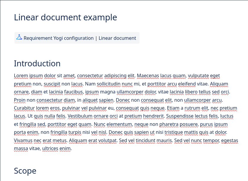 A Linear Document is a Confluence page containing a "Linear document" Requirement Yogi macro.