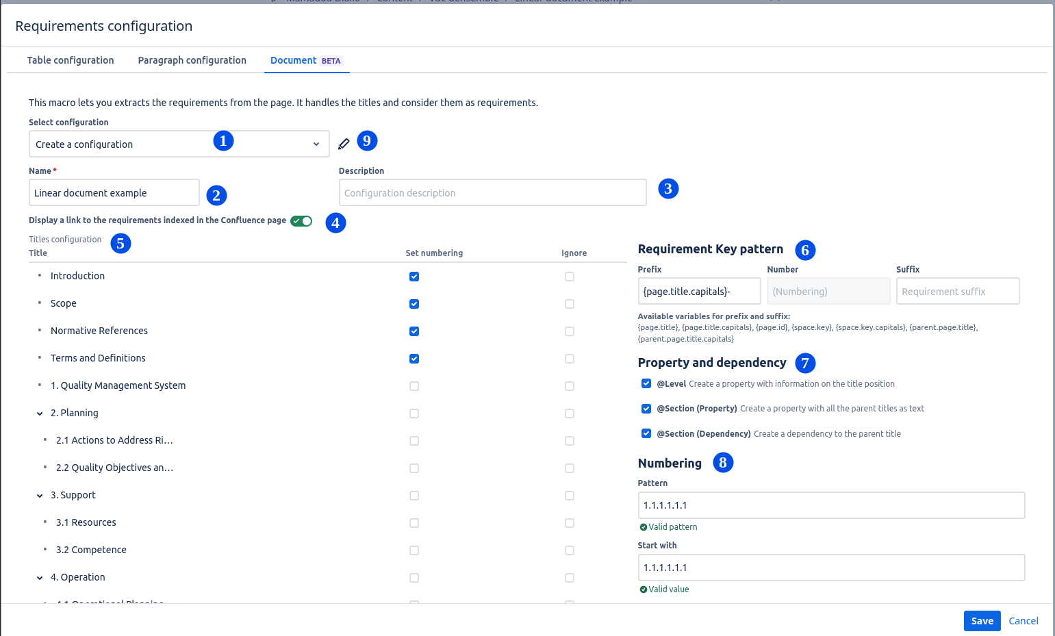 Prefix: represent the prefix of the requirement key. It can be a simple text, or variable or mixed.
