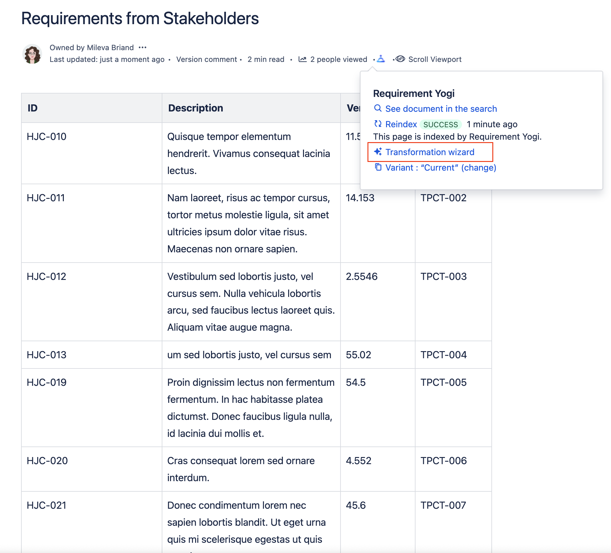 When you've imported a Word document into Confluence and you need to clean up the formatting for Requirement Yogi,