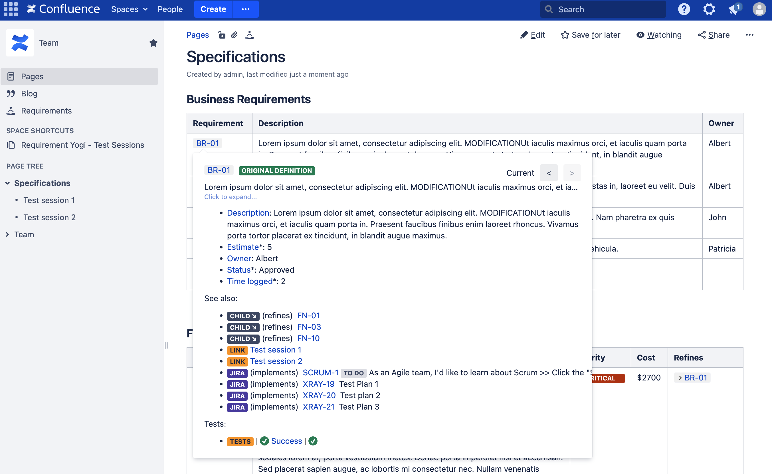 Requirement Yogi is targeted at analysts, developers, testers and more generally engineering teams who need requirement traceability. Requirement Yogi helps you manage requirement documents in Atlassian Confluence.
