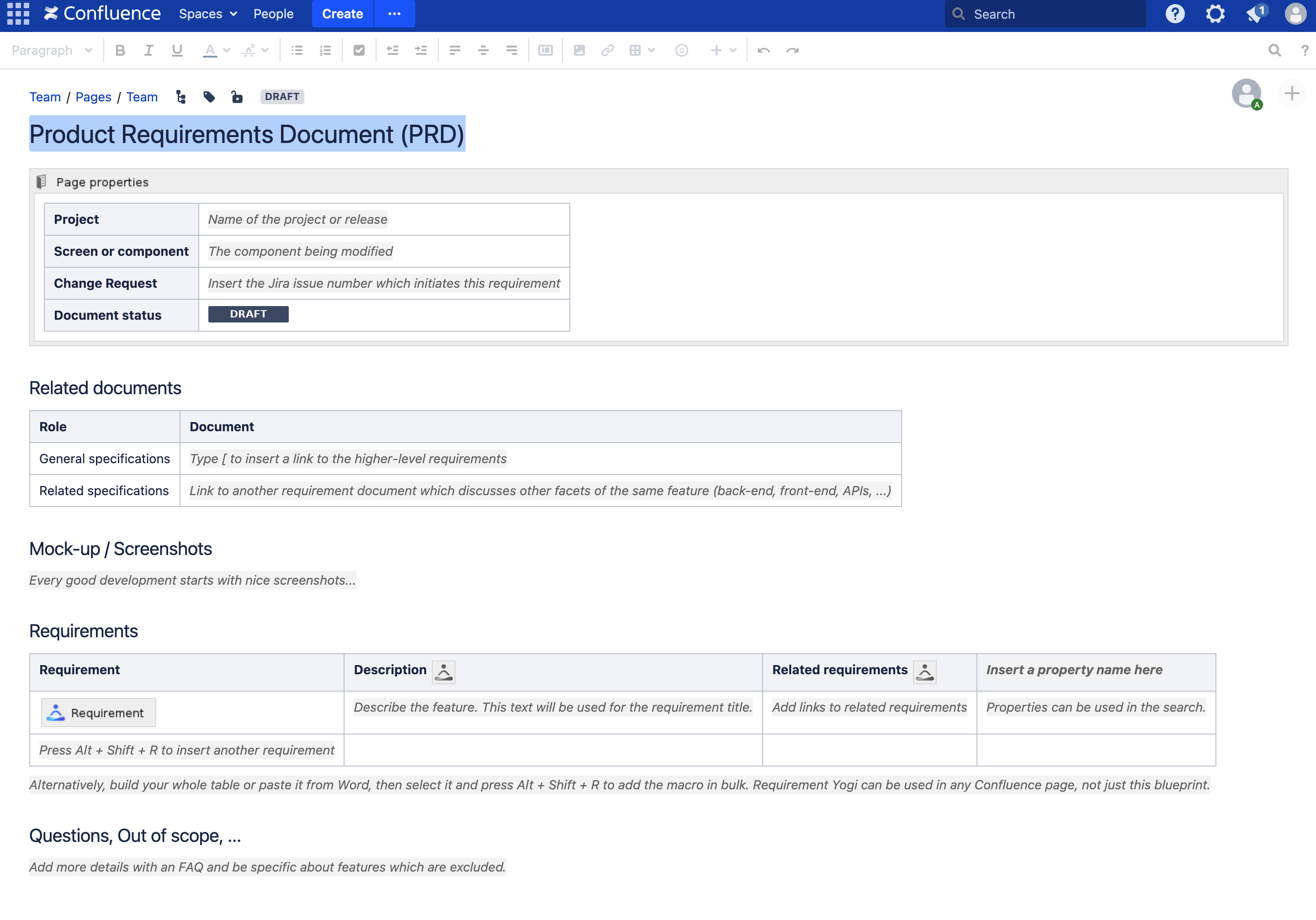 Blueprints are only available to guide you. They are not required for the normal behavior of Requirement Yogi.