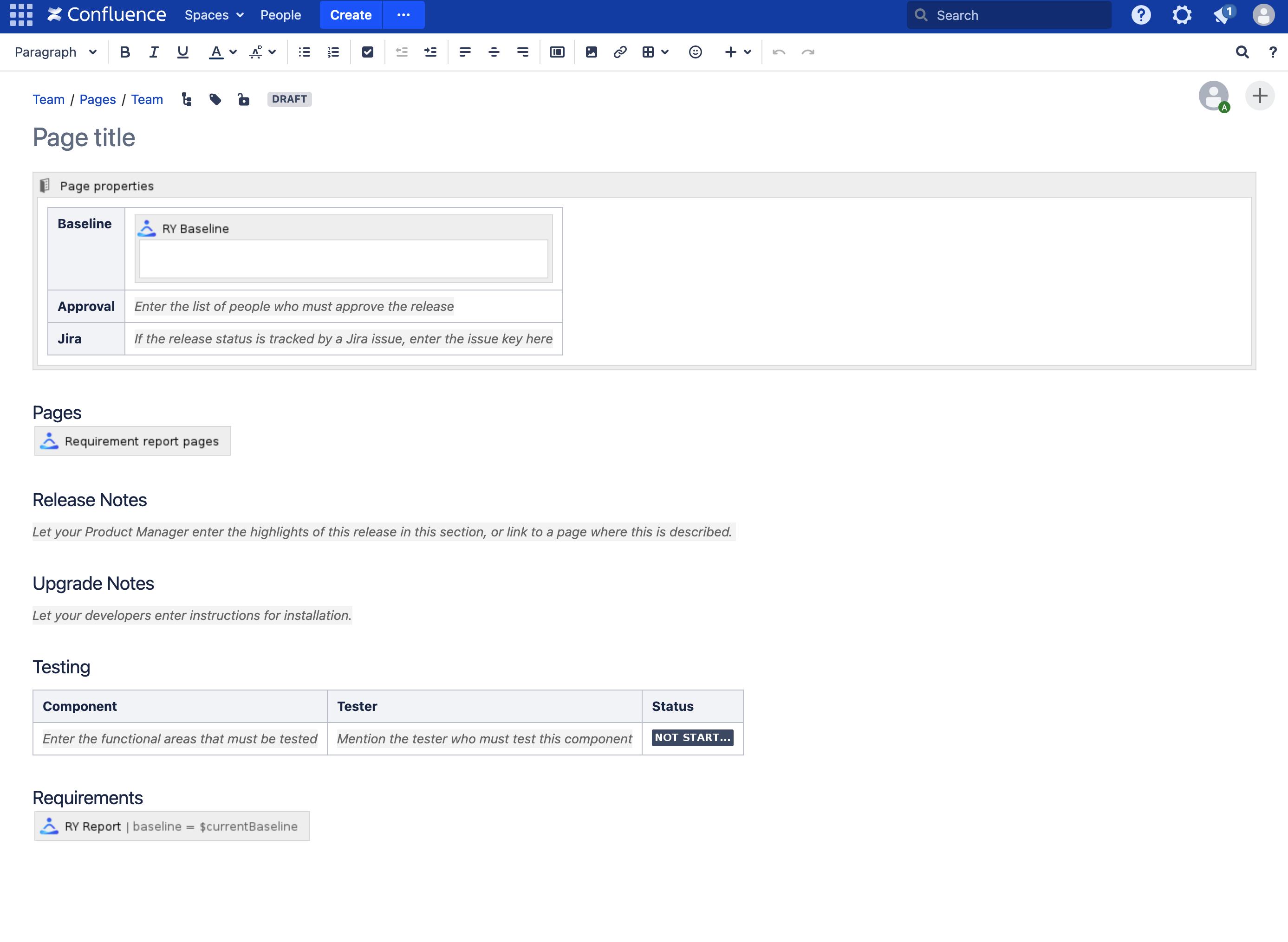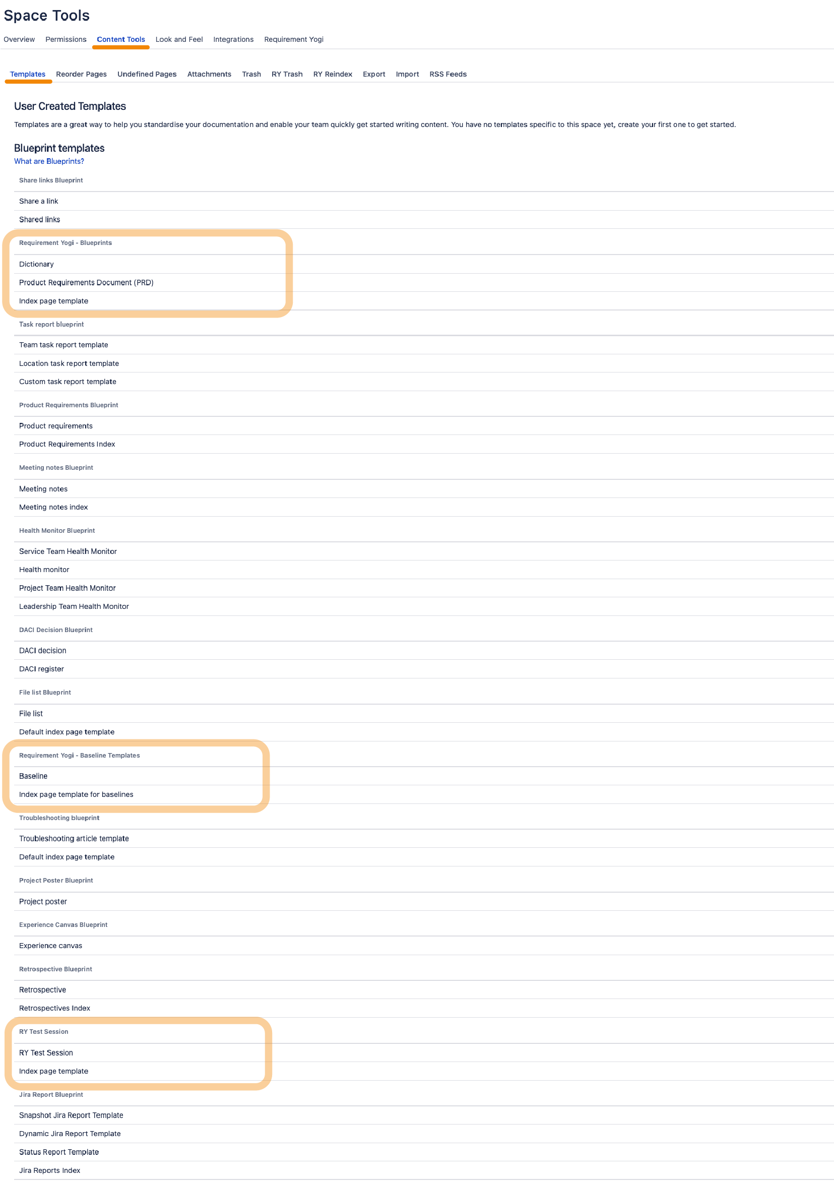 To suit your processes, you may want to customize the blueprints. This is a standard Confluence feature, available in the space administration or in the global administration.