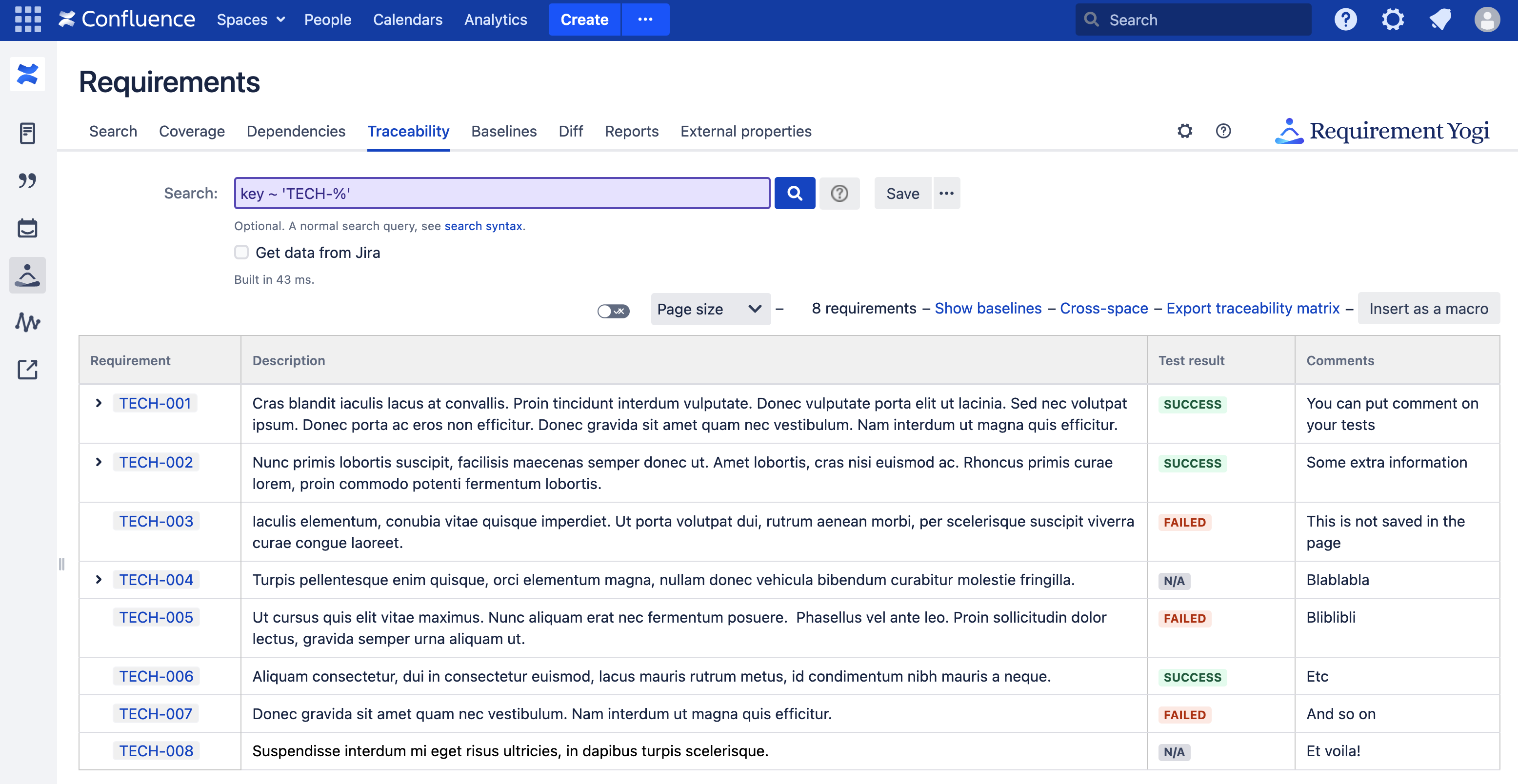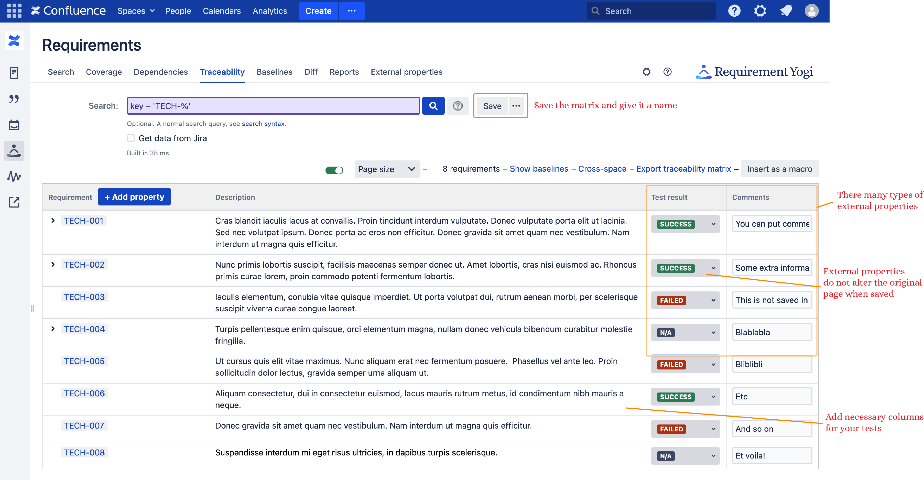 You can save this external properties matrix, and even insert it in a Confluence page, using the “Insert as a macro” button. Read the documentation for more detail: RY Reports