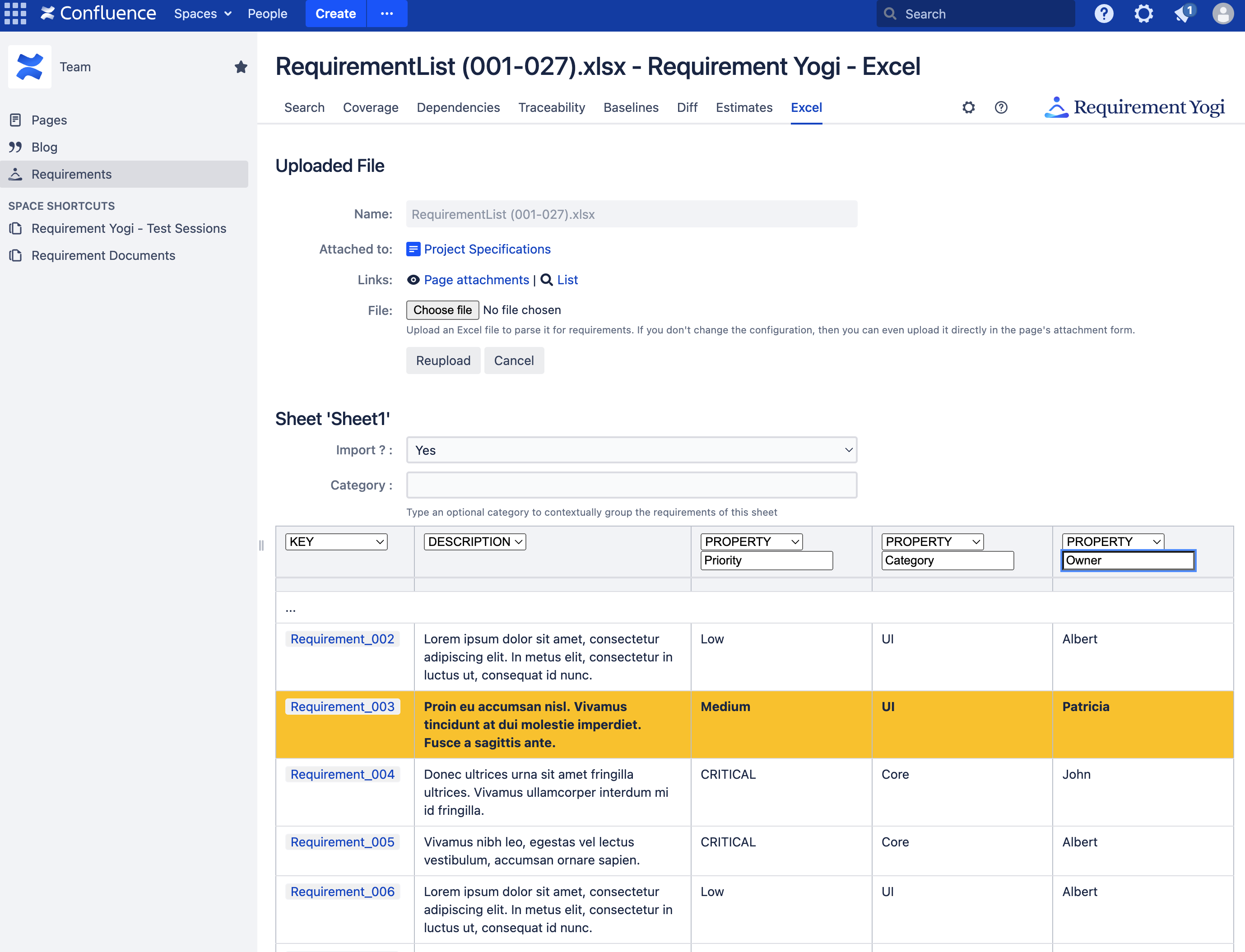 Since this version, we’ve replace the Excel tab with External Properties. The Excel import is mostly needed to export requirements from Confluence, send them to your stakeholders for validation, and then import them back in Confluence with added comments. We were not able to do that, Excel requirements were only visible and not editable. You can still import requirements from Excel, here’s how: