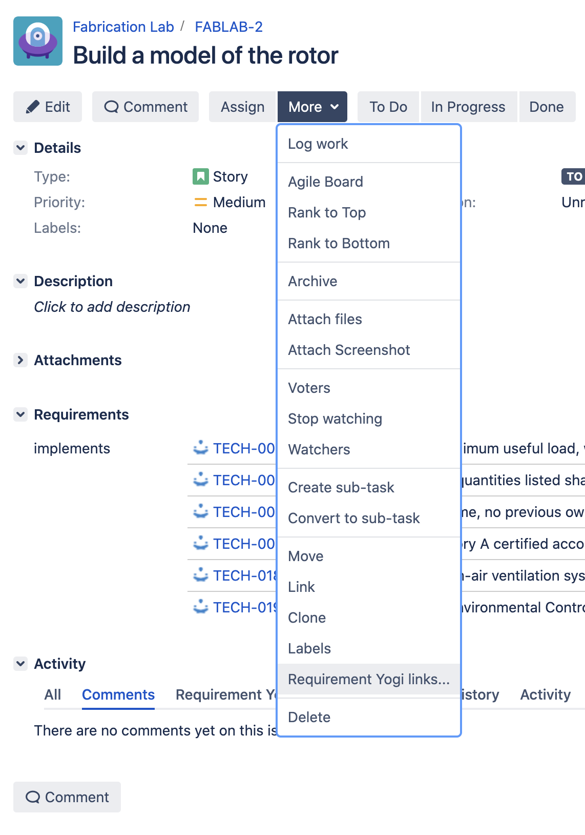Learn how to link requirements to Jira issues with the plug-in Requirement Yogi for Jira, available for free on the marketplace.