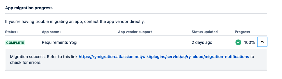 Or in the cloud, in Requirement Yogi configuration > Support > View the migration notifications.