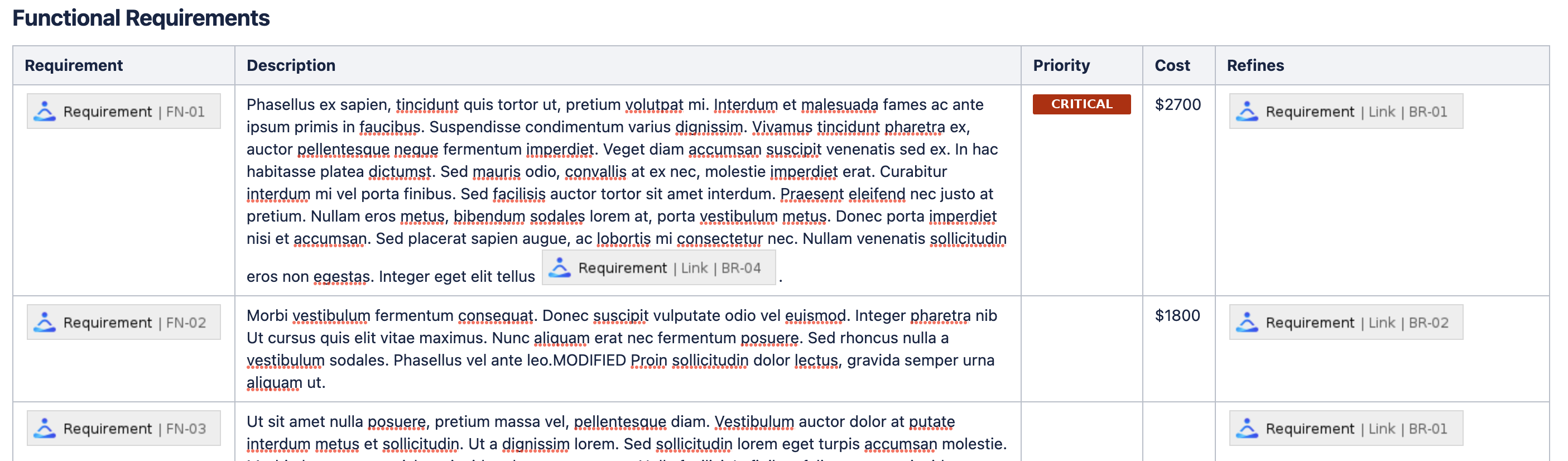 When you write your requirements in tables, whether in Horizontal, or Vertical, you will simply have to add the link to your requirement line.