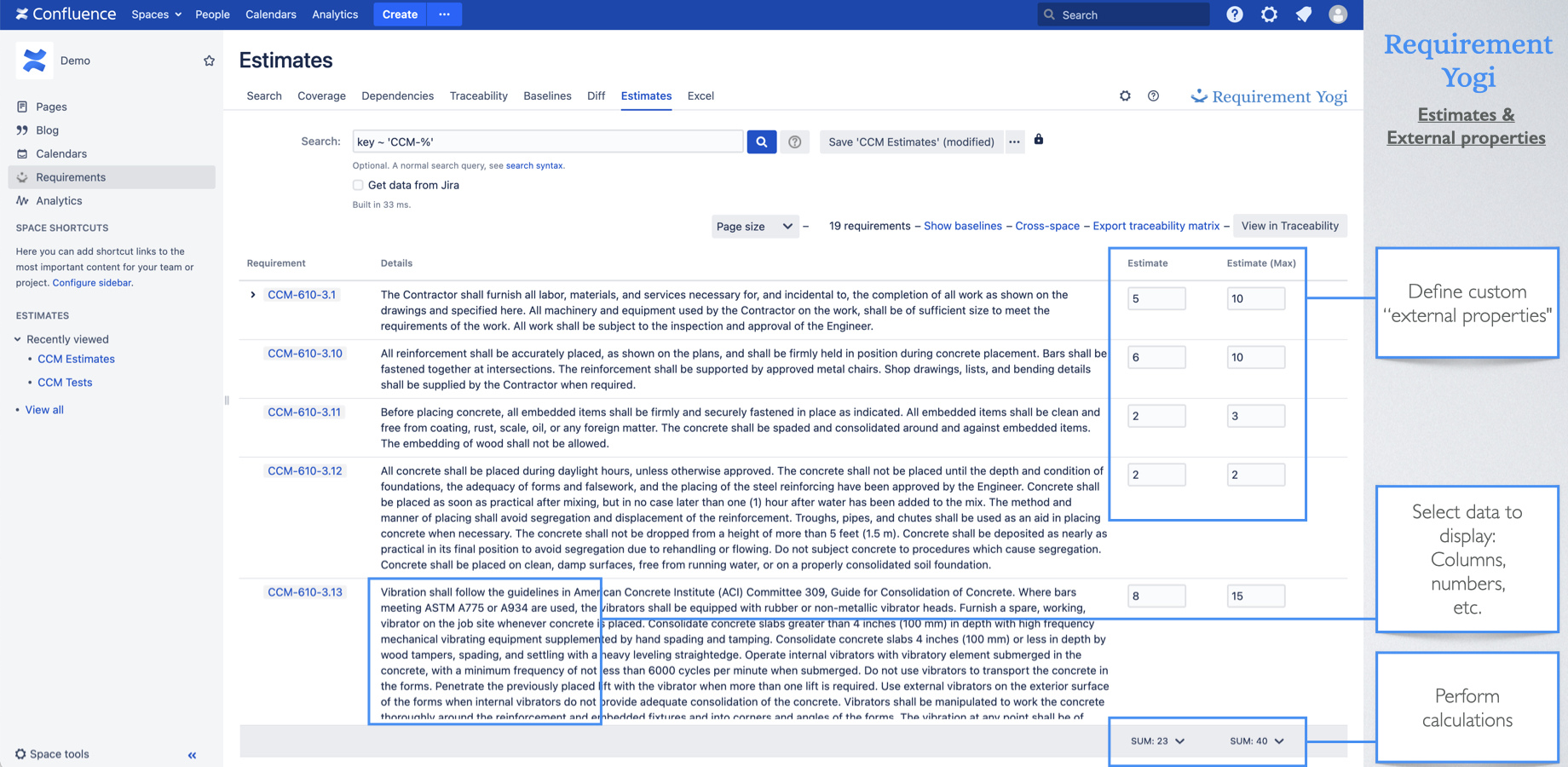 This is the main visible feature for version 3.0. You can define external properties for requirements, and manage them using the "Estimates" tab... for example to perform an estimation of your project: