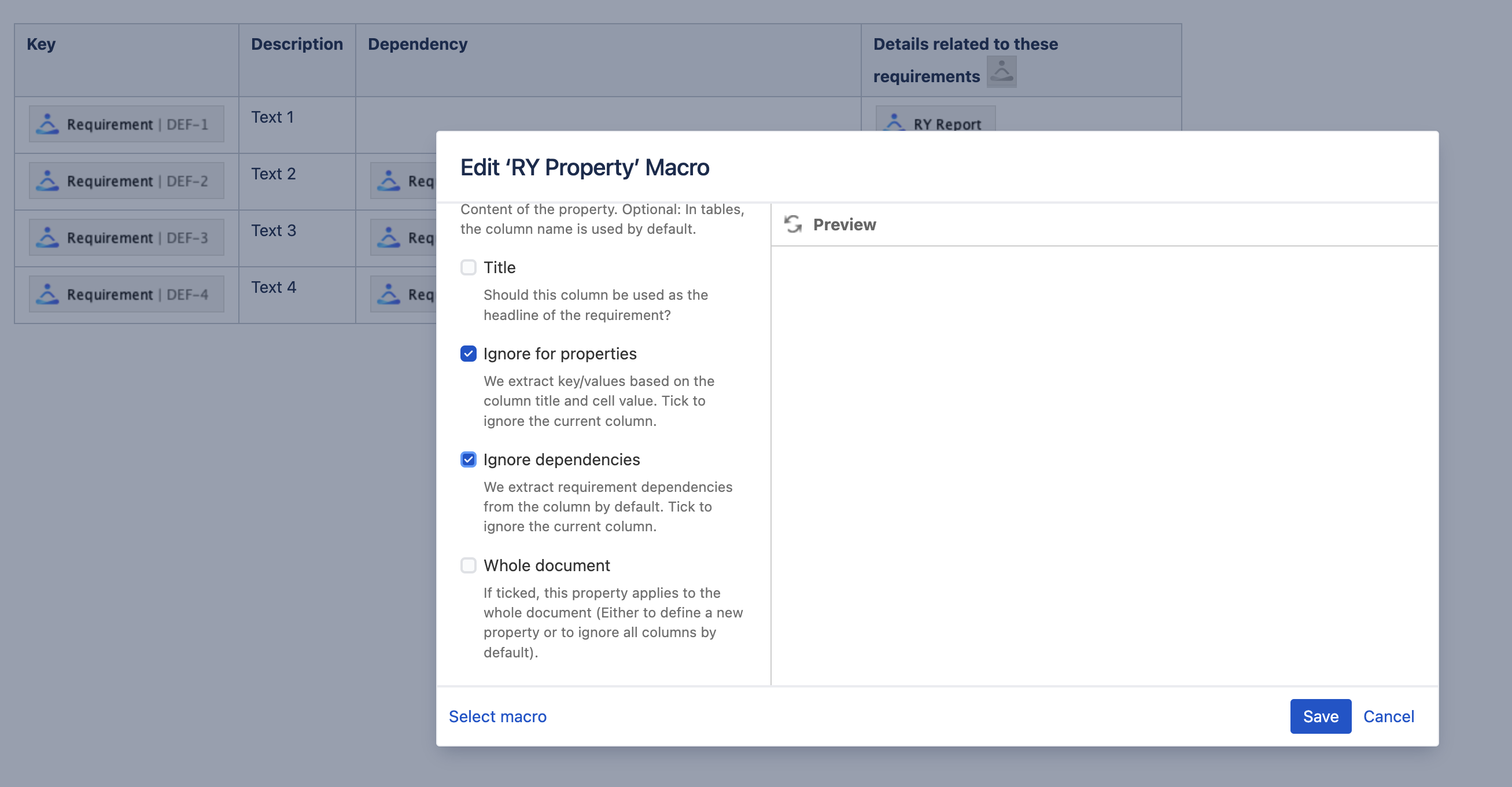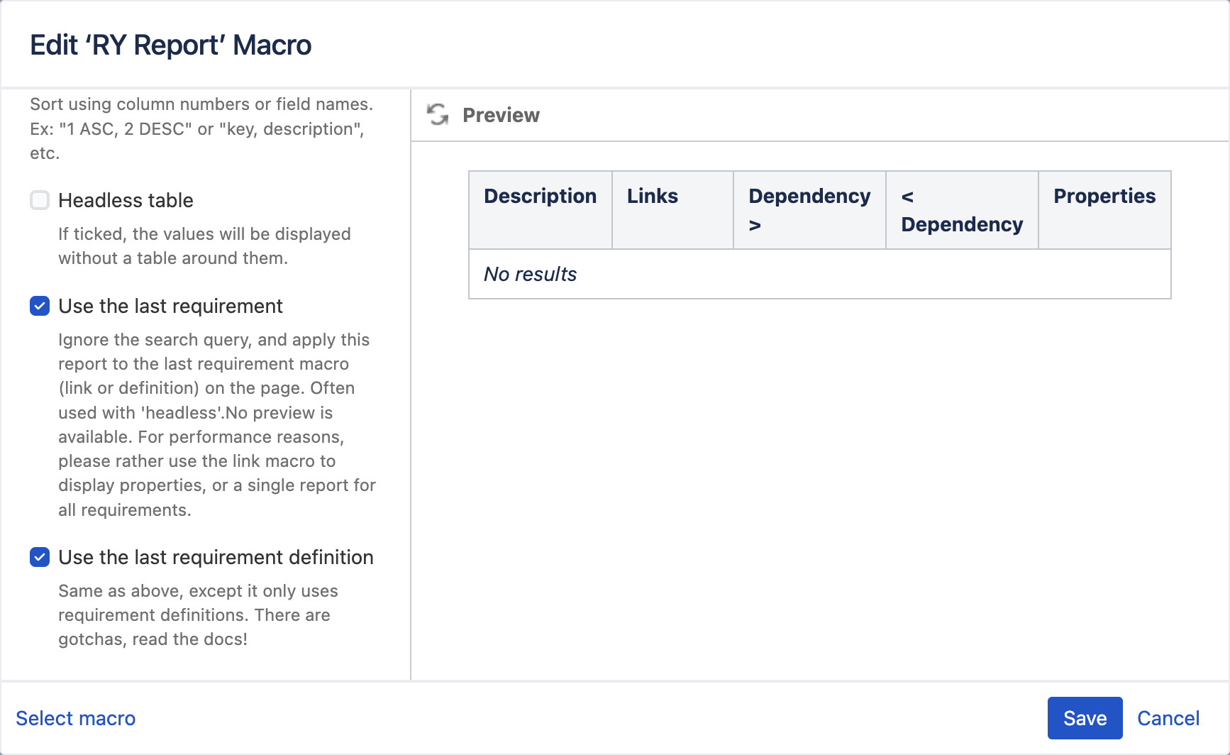 However, there is a trick if you tick "Use the last requirement definition", because of the recursivity / inception: You are showing a report of the current requirement, in the current requirement, which causes an infinite recursion. Therefore: