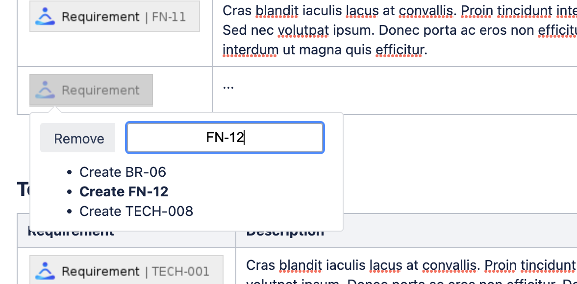 Use short requirement keys with a prefix. Example: "FUNCTIONAL-001" or "FN-001". | Use spaces or expressions as requirement keys. Only letters, numbers, underscore (_), hyphen (-) and dot (.) are accepted. Don't use the view mode's "inline creation" if you're starting. That only becomes useful when you're tired of importing requirements from Word. |