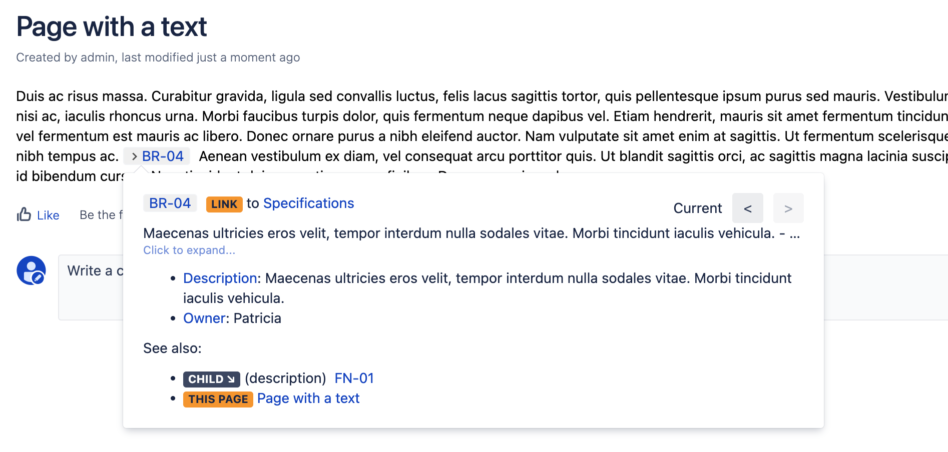 Thanks to the macro, requirements have a unique hyperlink. Requirements can be seen: