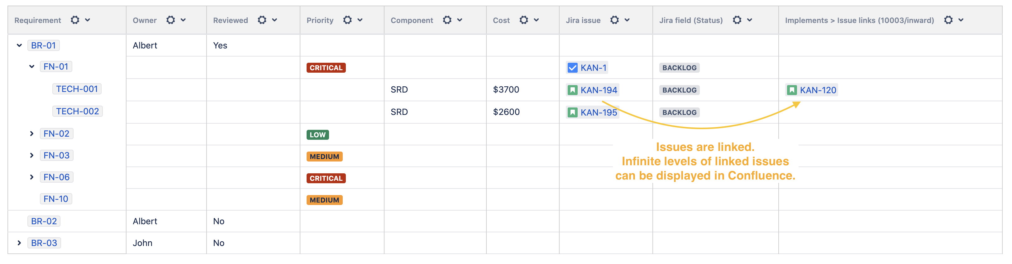 Of course, each Jira field can be displayed in the matrix in Confluence: | ![]() |