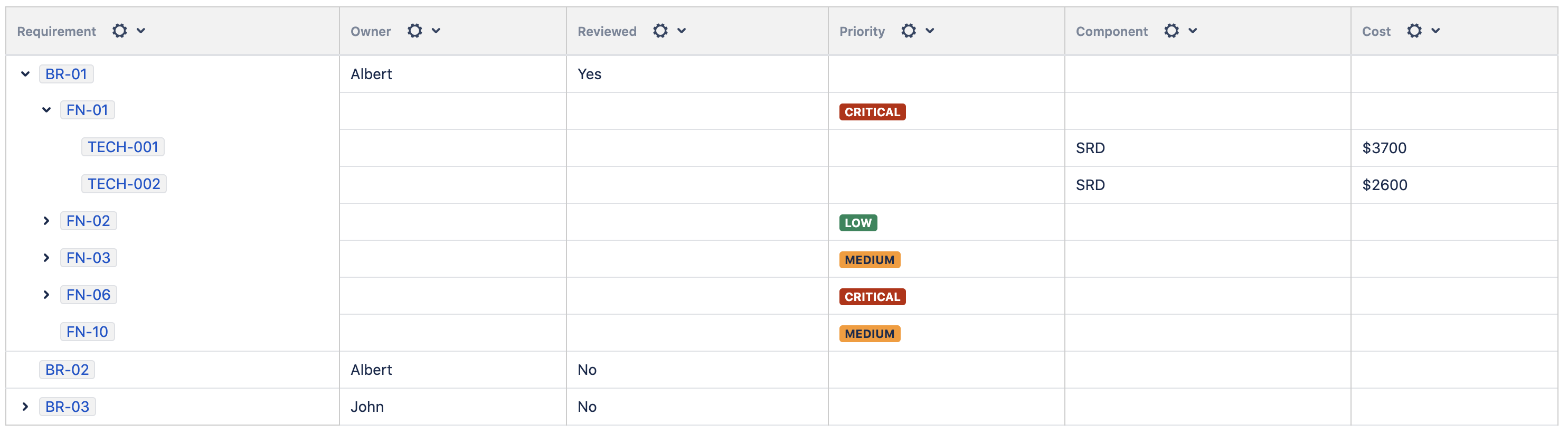 We recommend adjusting the search query to only display requirements you are interested in. For example, if you want to filter on the prefix "REQ-", use: key ~ 'REQ-%'. | ![]() |