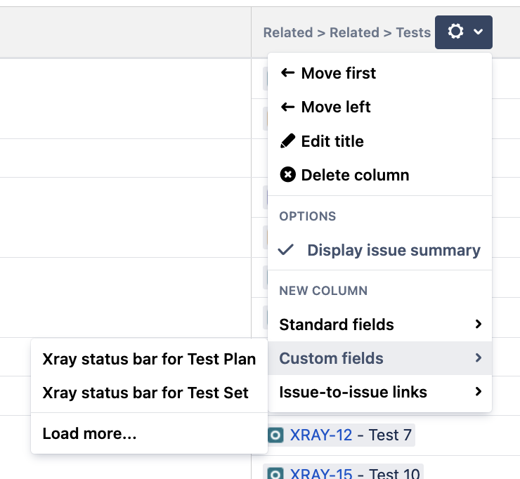 com.xpandit.plugins.xray:tests-associated-with-test-plan-custom-field | Tests associated | Jira issues |